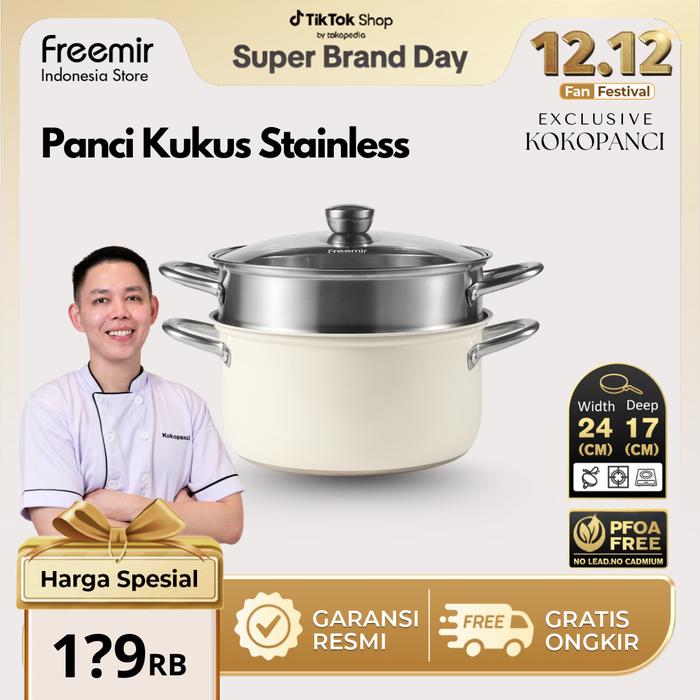 [XCLSV Kokopanci] freemir Steamer Kukusan Stainless Steel 2 Susun Beige Pengukus Serbaguna Kapasitas Besar Kitchenware