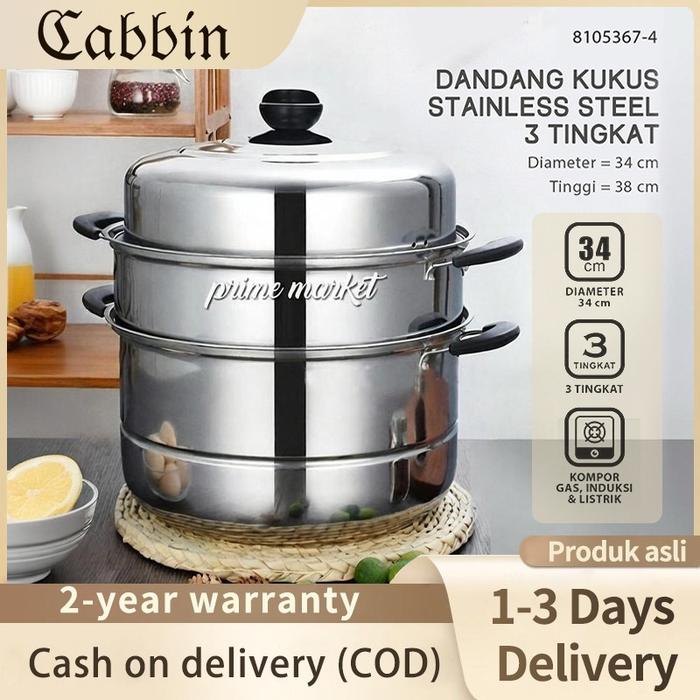 CABBIN Panci Kukus Siomay Dimsum Bakpao Nasi Tim Steamer Dandang Stainless Steel Susun 3 Ukuran 28cm - 28CM