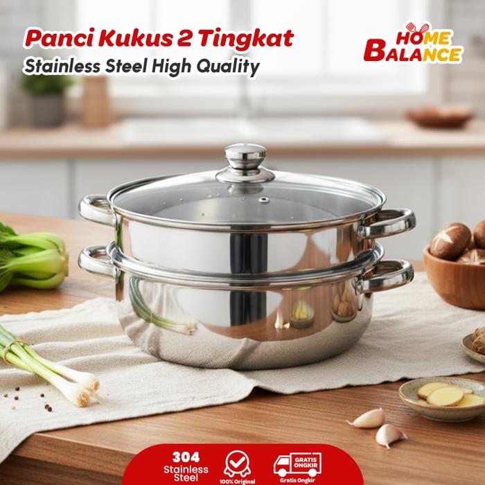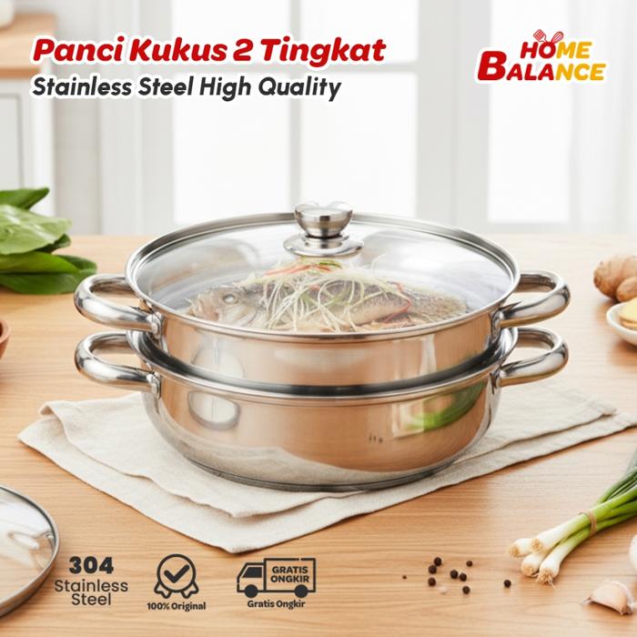 HomeBalance Panci Kukus 2 Susun Stainless Steel Steamer Serbaguna Food Grade Premium HR1120A - Tanpa Bubble