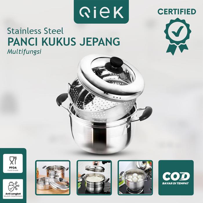 Qiek Panci Kukusan Kecil Panci Tutup Kaca Panci Kukus Stainless Steel Panci Kukus Serbaguna Panci Kukus - 24cm