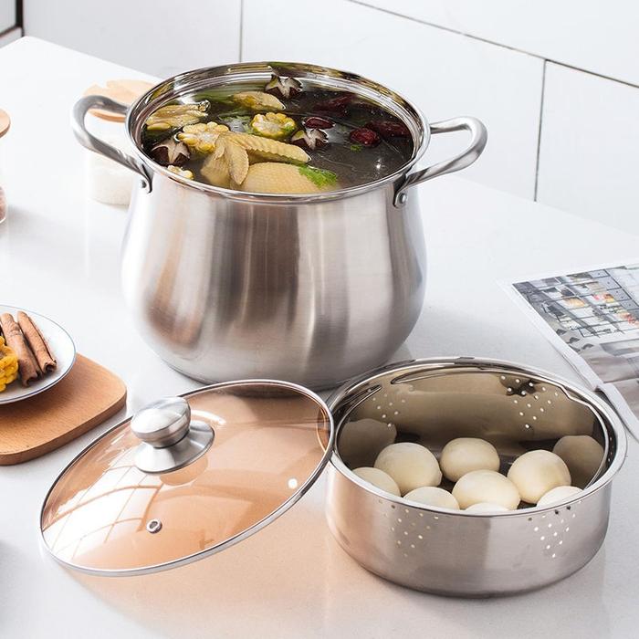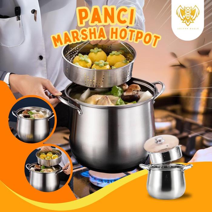 yellowEN EAGLE - Panci Steamer Aladin 22 CM Panci Kukus High Pot Stainless Premium Tebal + Kukusan Gagang - 22 CM
