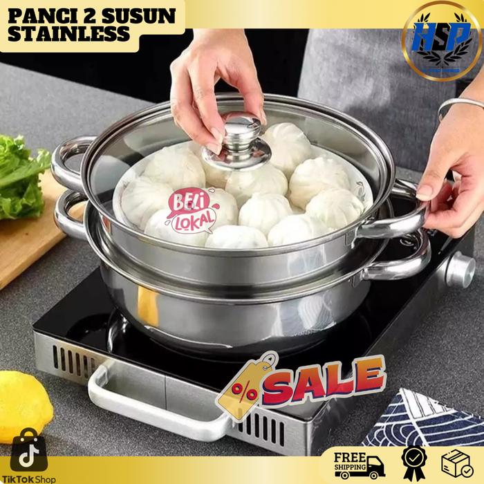 HSP - PANCI KUKUS 2 TINGKAT TUTUP KACA 28CM / STEAMER STAINLESS DANDANG KUKUS / PANCI SIOMAY 2 SUSUN