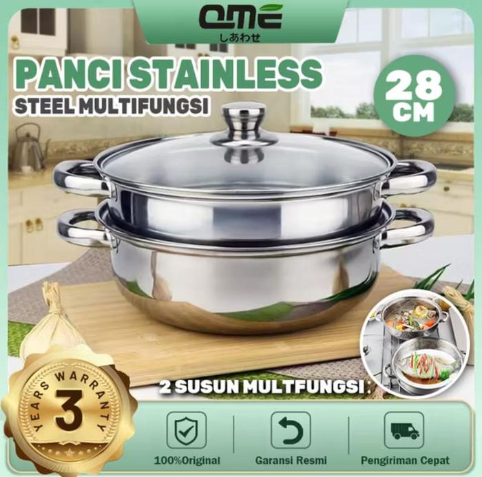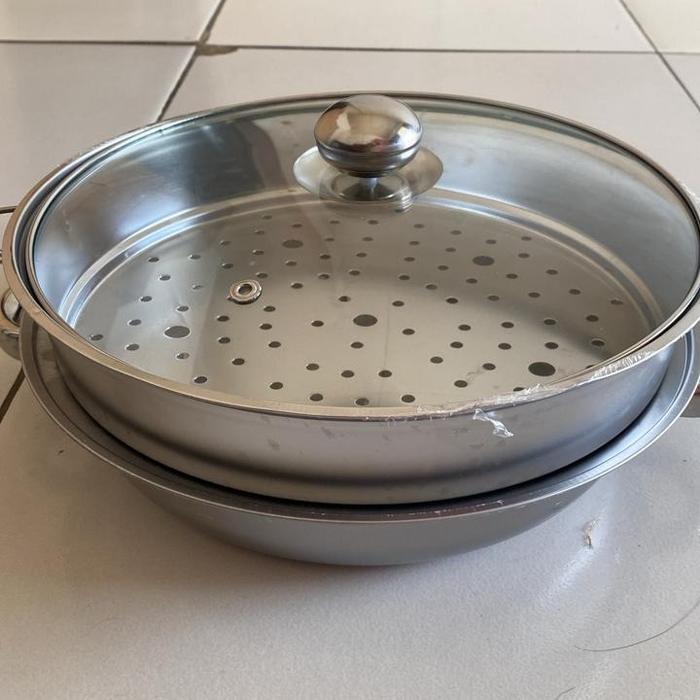 Hot Sale Panci Kukus 2 Sususn Stainless Steel Panci siomay Susun Dengan Tutup Kaca Panci Steamer Stainless Steel