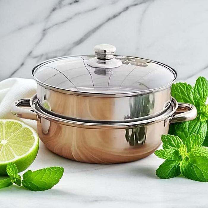 Panci Kukus Stainless Steel 28 CM + Bonus Kotak Kukus & Capitan | Panci Kukus Serbaguna Anti Karat