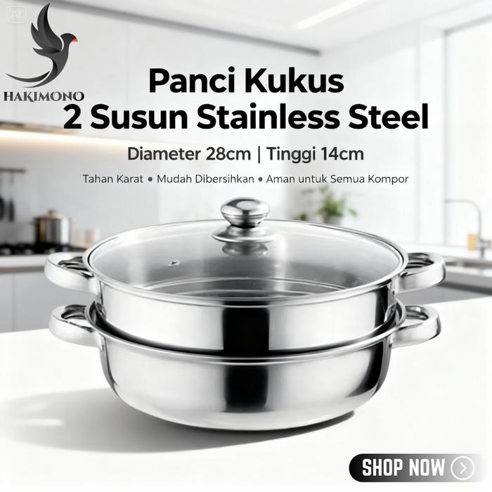 DS.ID c06 Kitchen Ware - Panci Kukus Set Stainless Steel Panci Sup Steamer Ikan Bakpao Siomay 2 Susun 28Cm Tebal