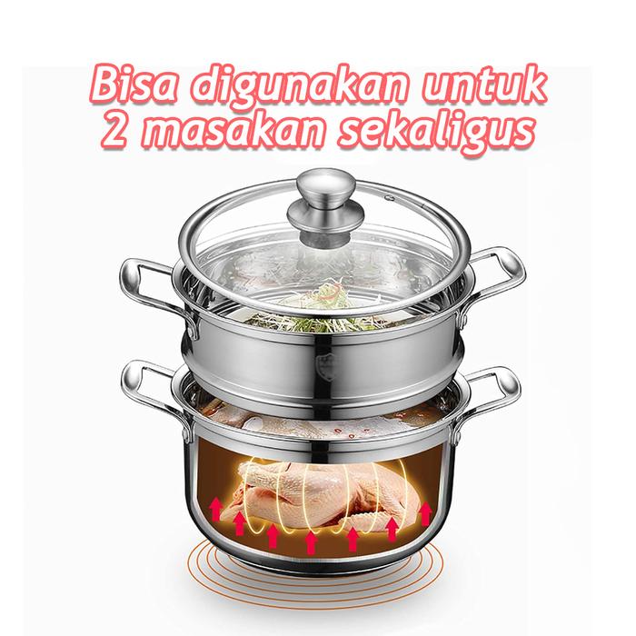 Panci Kukus Stainless Steel 2 Susun Panci Steamer Panci Rebus Serbaguna Pengukus Anti Karat - 22cm