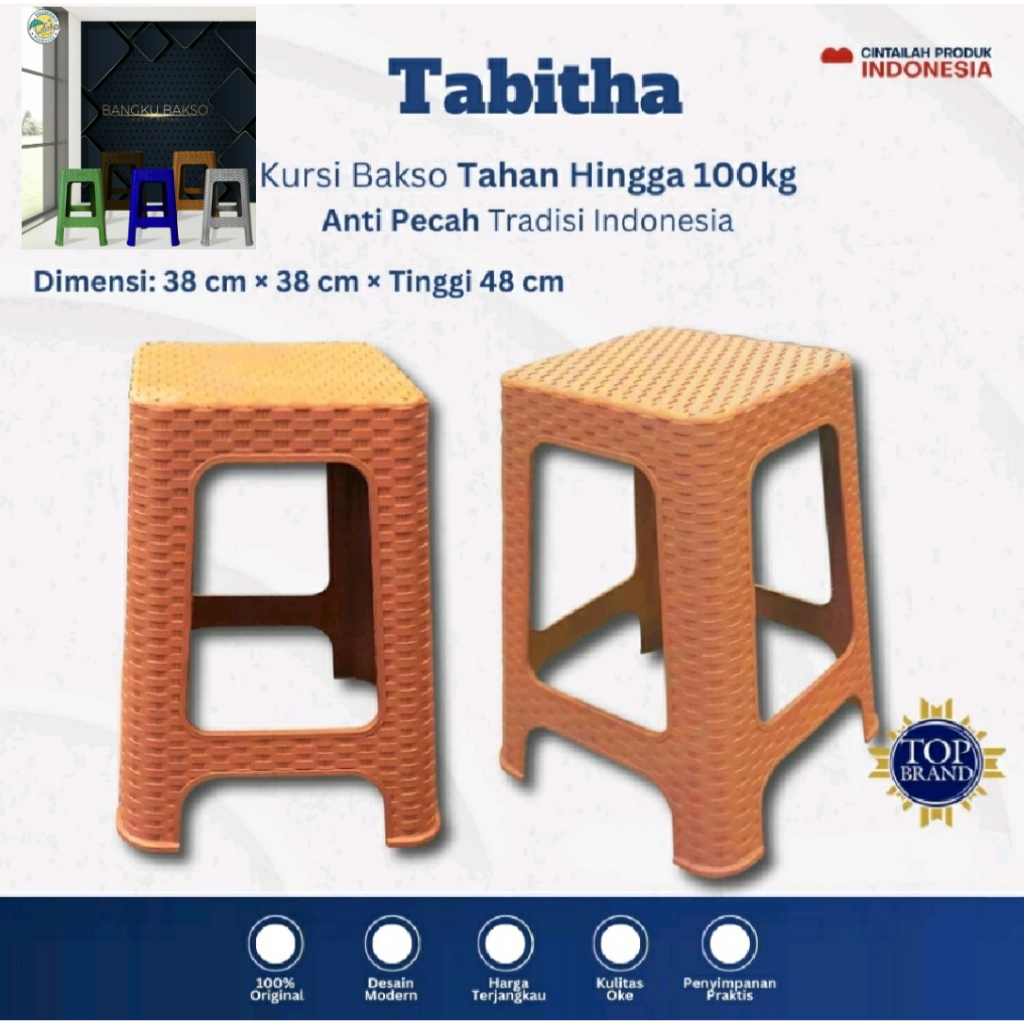 Tabitha Kursi Bakso Bangku Baso Plastik Anti Pecah Motif Anyaman Rotan Rattan Tikar Square Chair Rotan