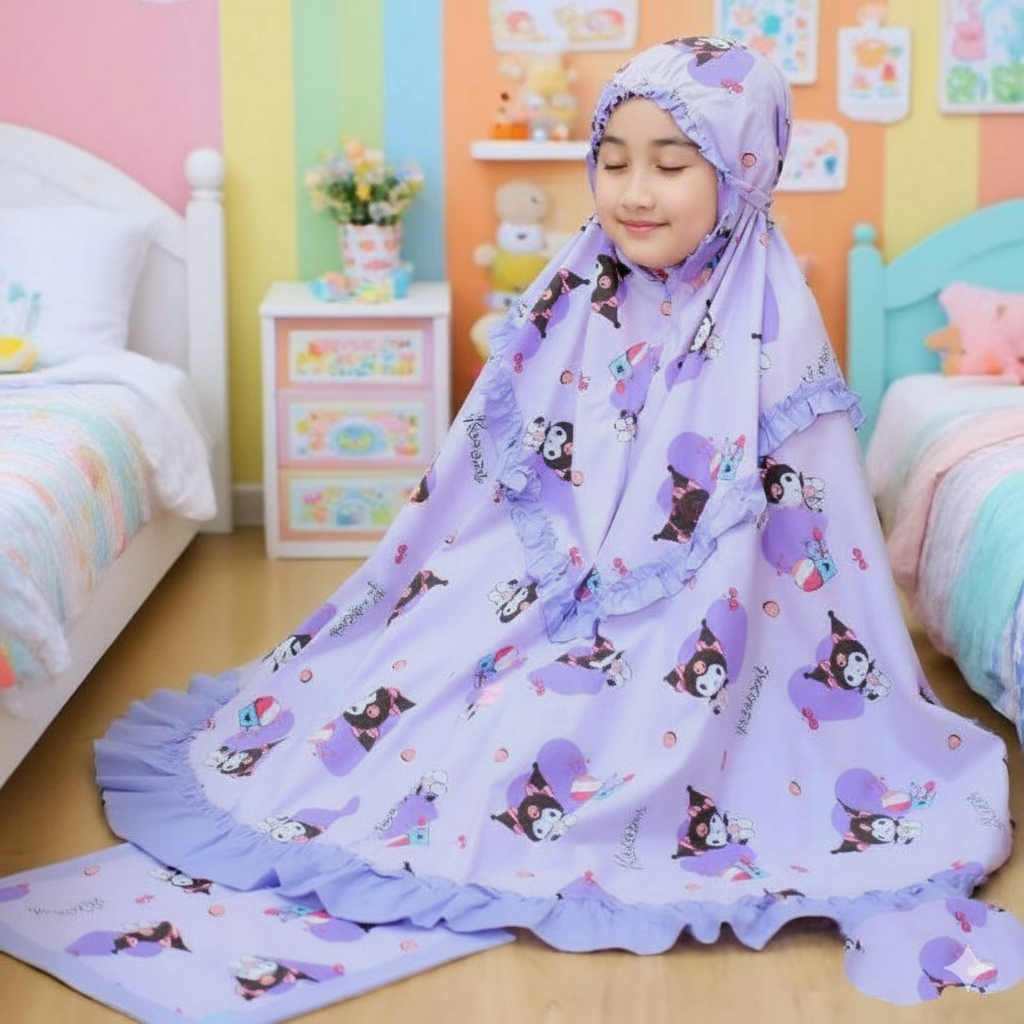 MUKENA ANAK VIRAL MOTIP KUROMI TERBARU USIA 1/9 TAHUN BAHAN ADEM TIDAK PANAS