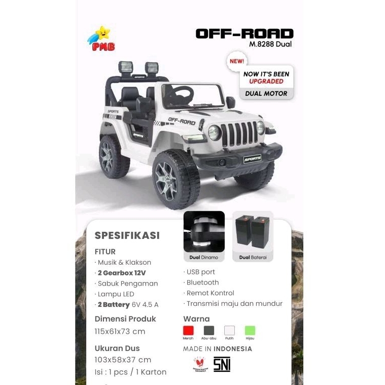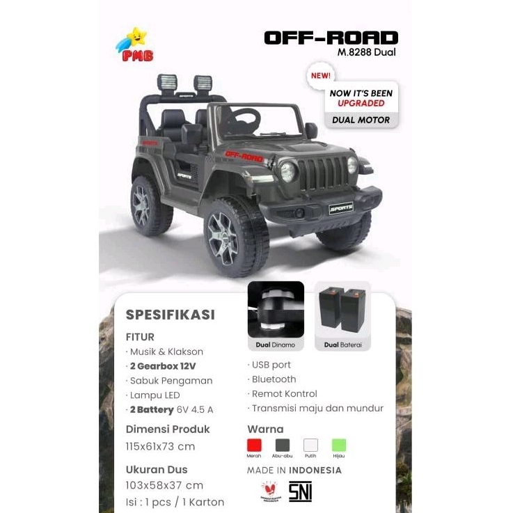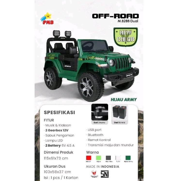 Mobil Aki Mainan Anak Jeep Off-Road PMB M-8288 Dual M8288 Dual M 8288 Dual 8288 EVA 8288 EVA