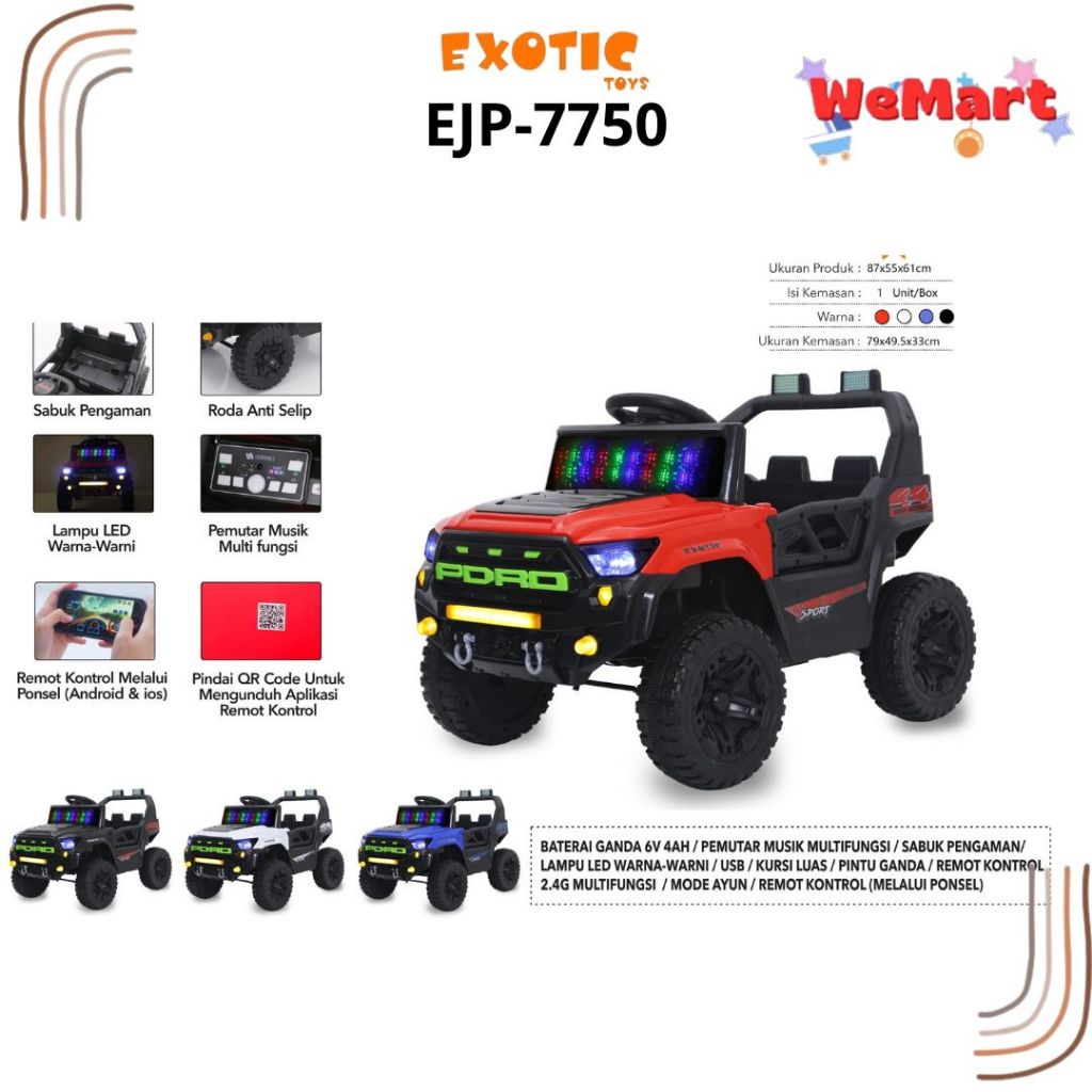 EJP 7727 EJP 7750 EXOTIC KIDS RECHARGEABLE CAR // Mainan Mobil Aki Anak Ban Plastik Dilengkapi Musik // Ejp-7727 Ejp-775