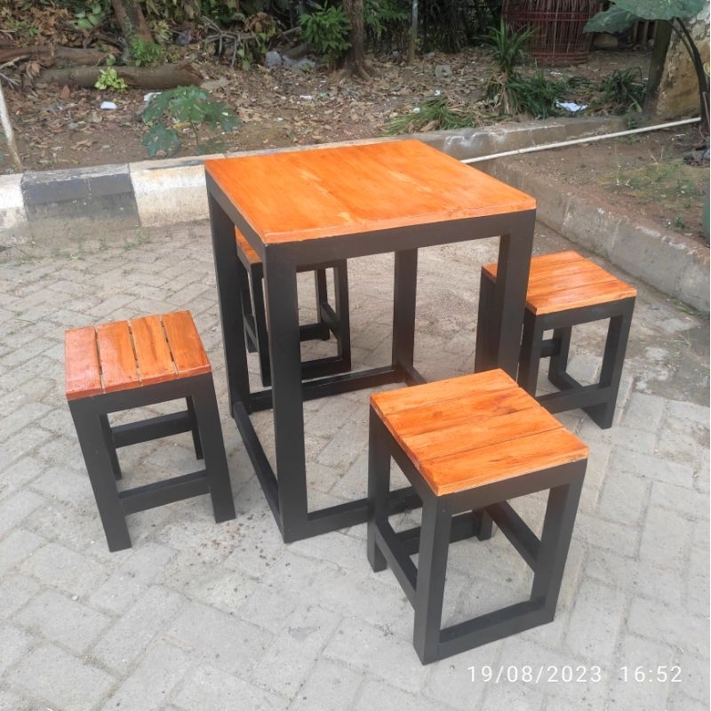 Meja Makan Set Cafe Resto Warung Bakso 1 meja + 4 kursi Type Cubic