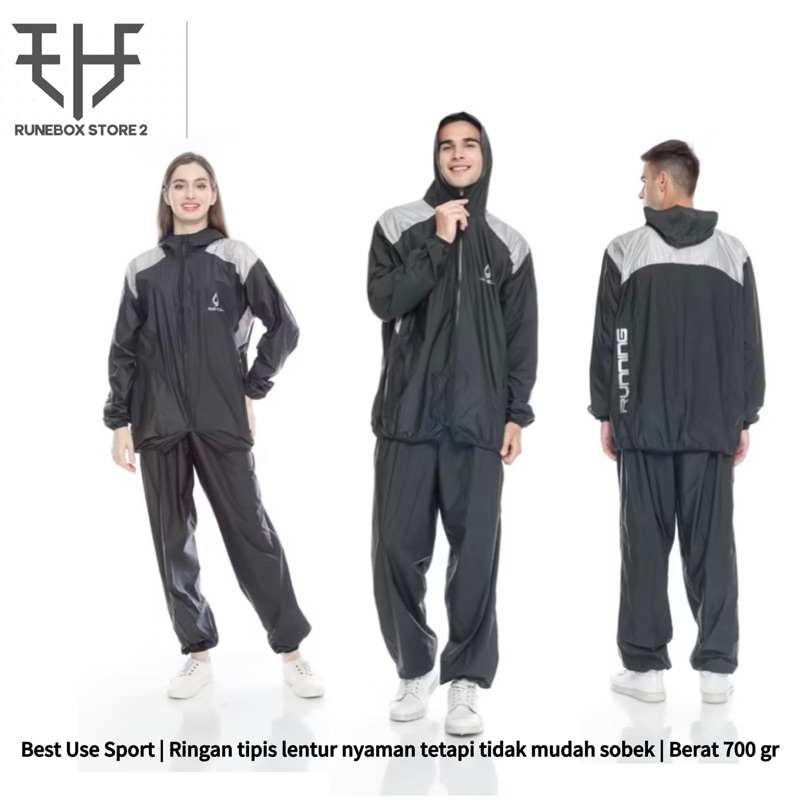 Runebox Sauna Suit Running Rainsol Sport | Jaket/Baju Setelan Sauna Olahraga Pembakar Lemak Unisex Cewe Cowo Jumbo