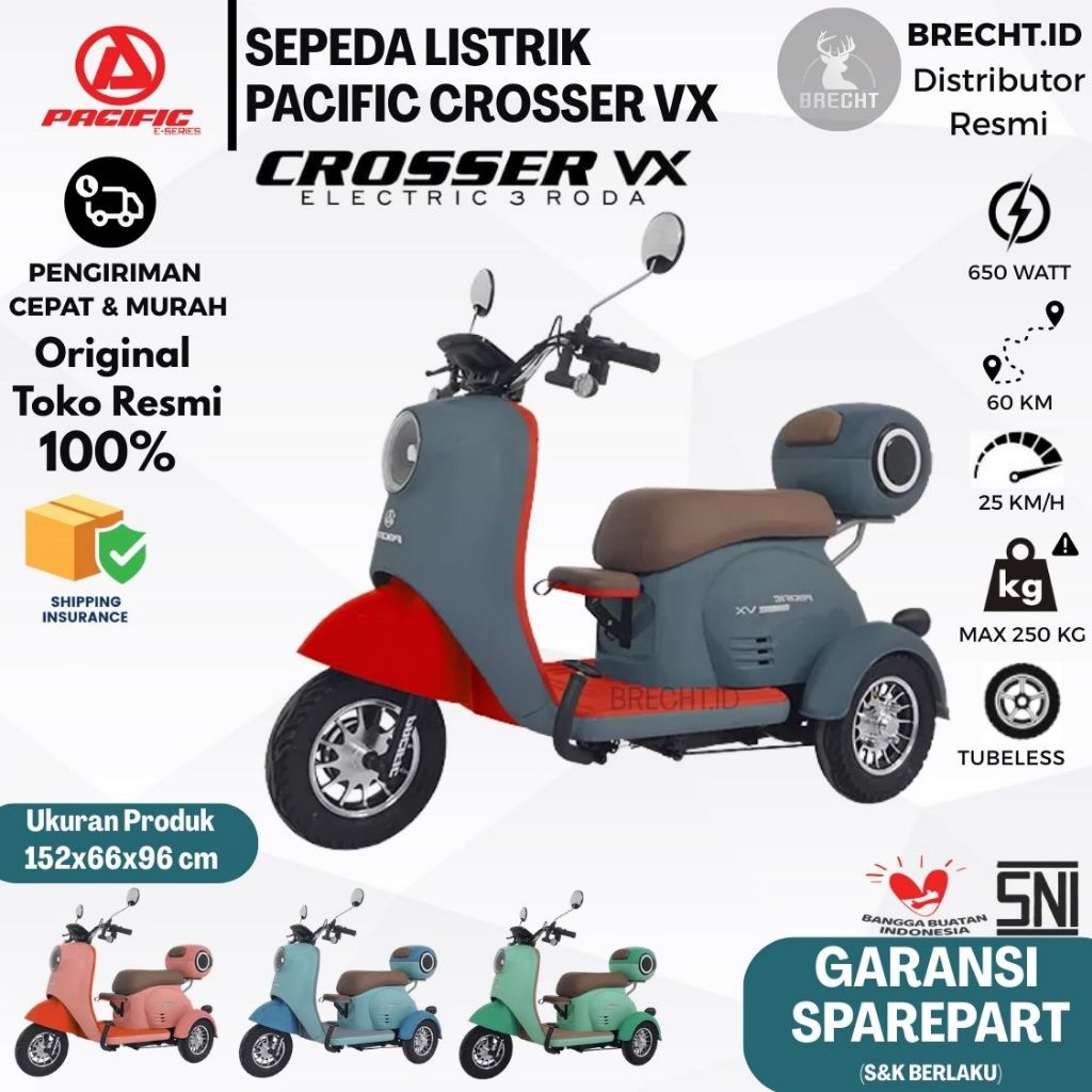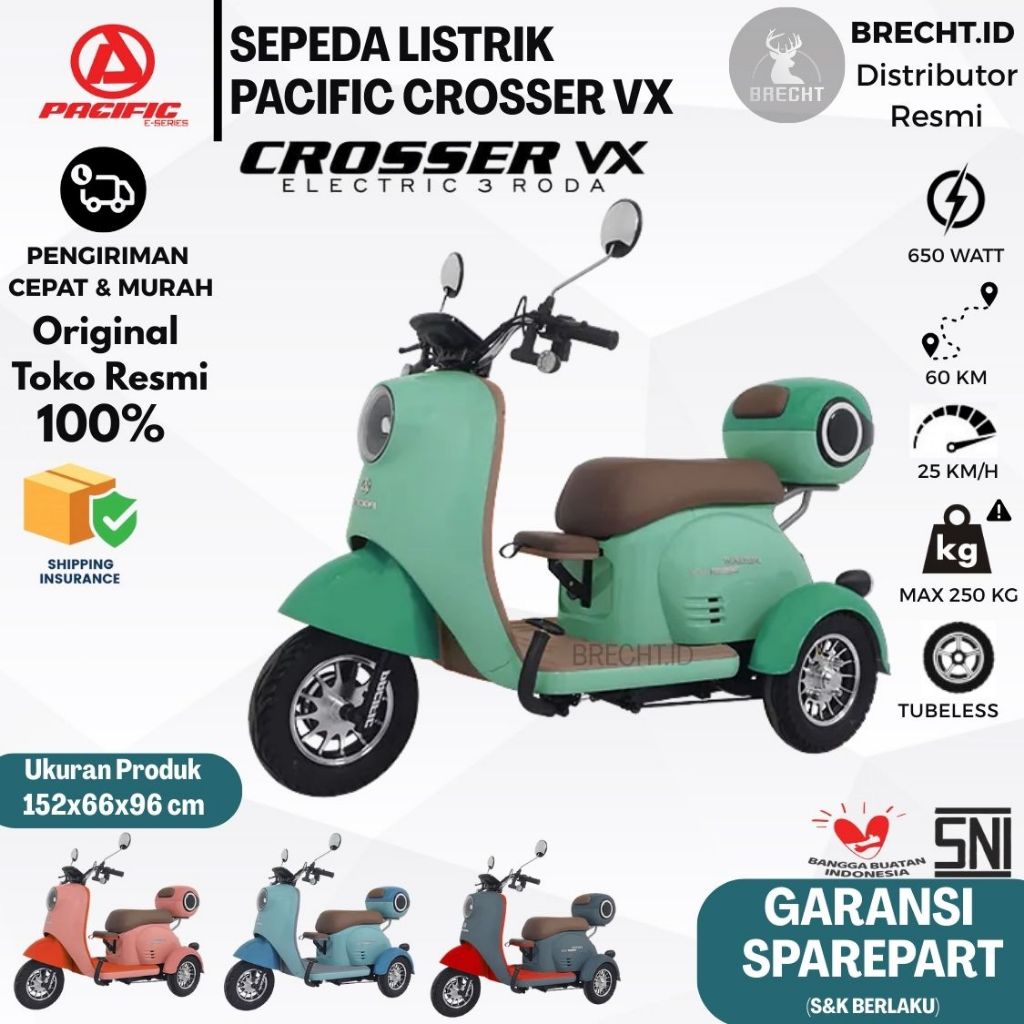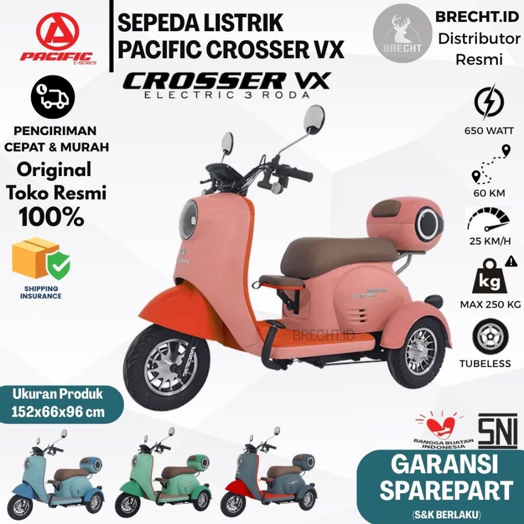 Sepeda Motor Listrik Roda Tiga Pacific New Crosser VX 48v / 20 Ah 650 Watt GARANSI ORIGINAL