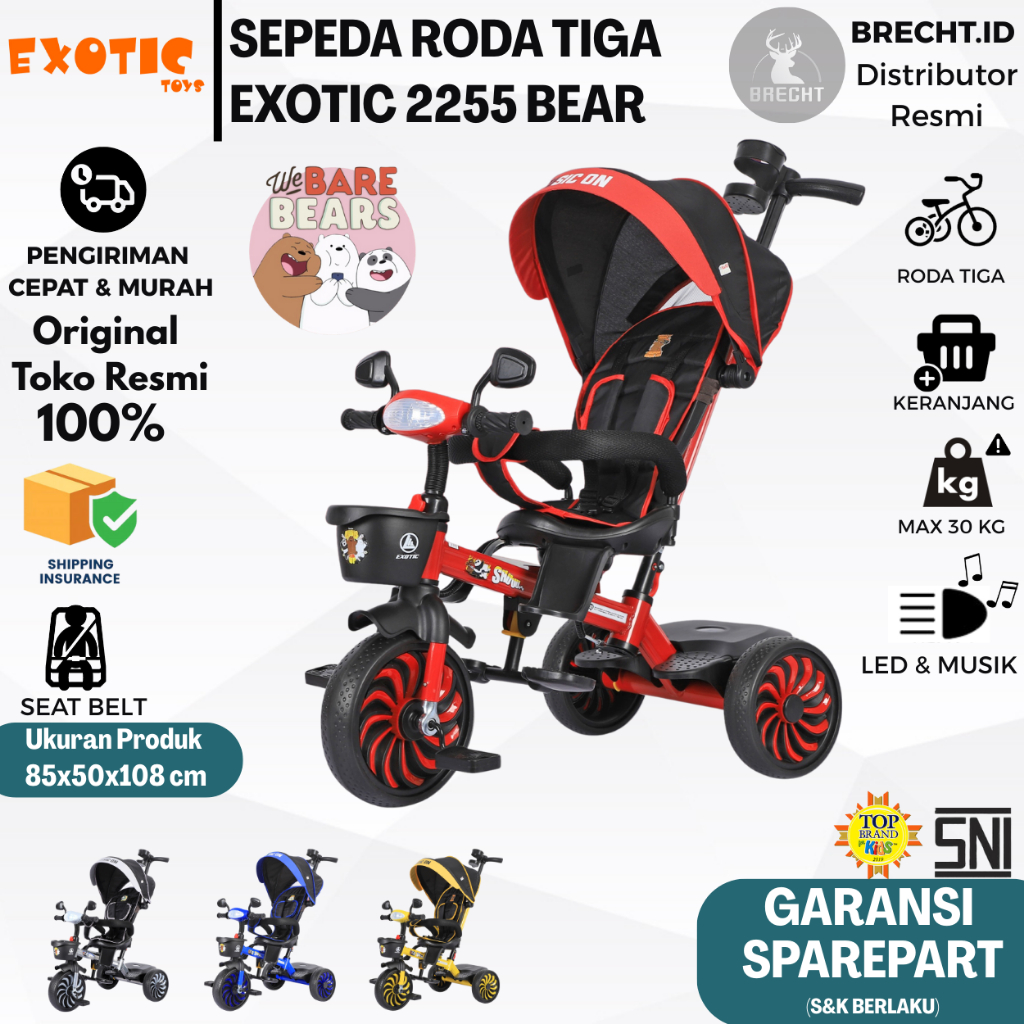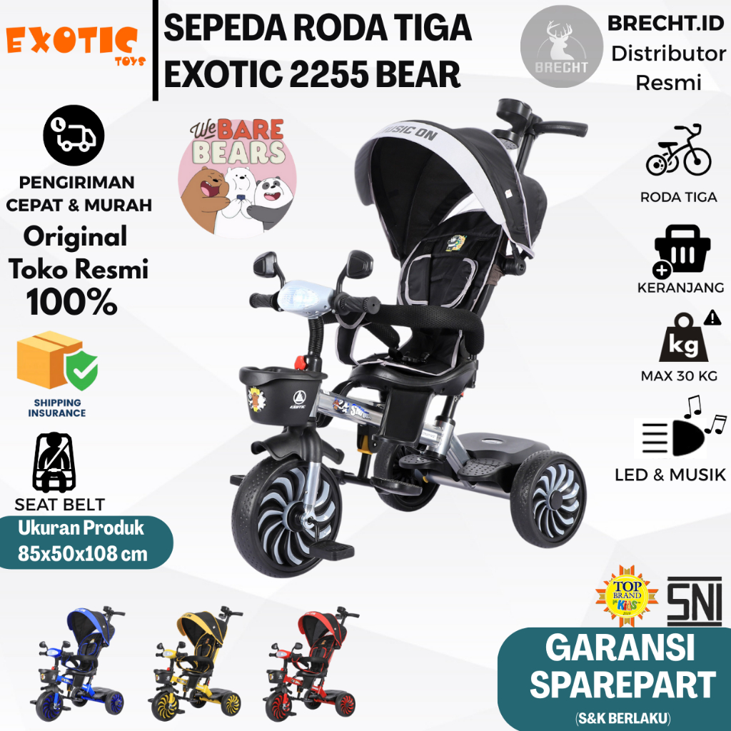 Sepeda Anak Roda Tiga Tricycle Exotic ET-2255 / ET 2255 BARE BEARS Original Exotic
