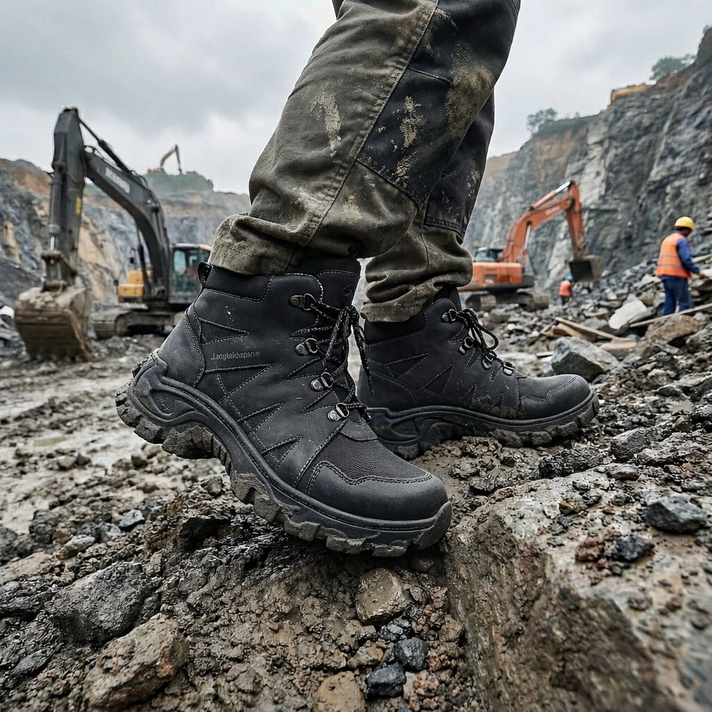 Sepatu Safety Pria Proyek Lapangan Warna Hitam Size 38-48 Ujung Besi Sole Karet Anti Licin Sudah Dijahit