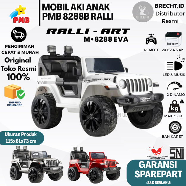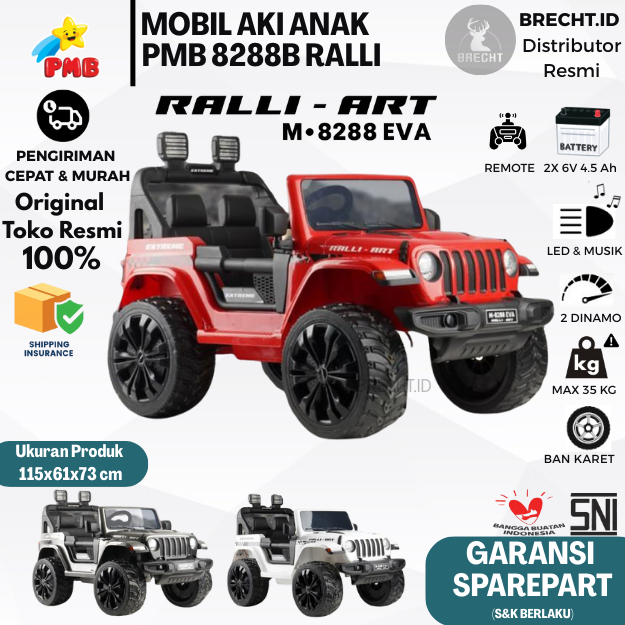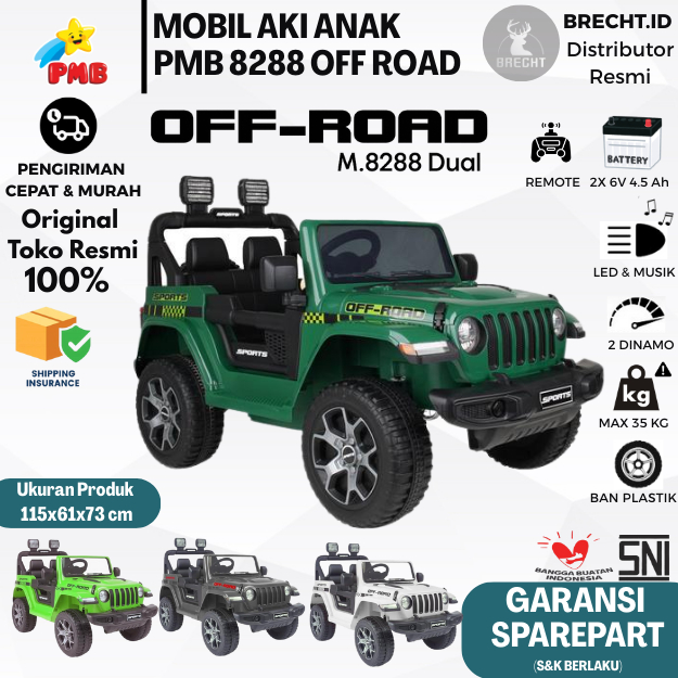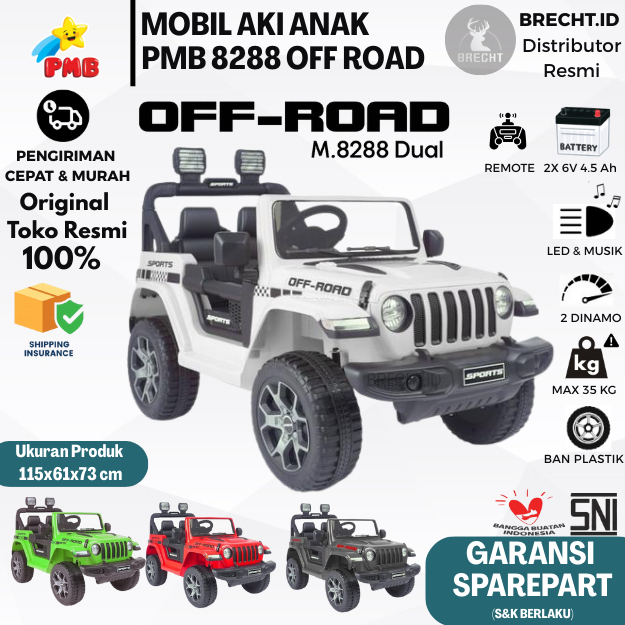 Mainan Anak Mobilan Aki Jeep PMB Rubicon Off-Road M-8288 Ban Eva Karet