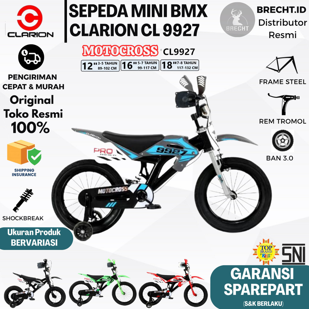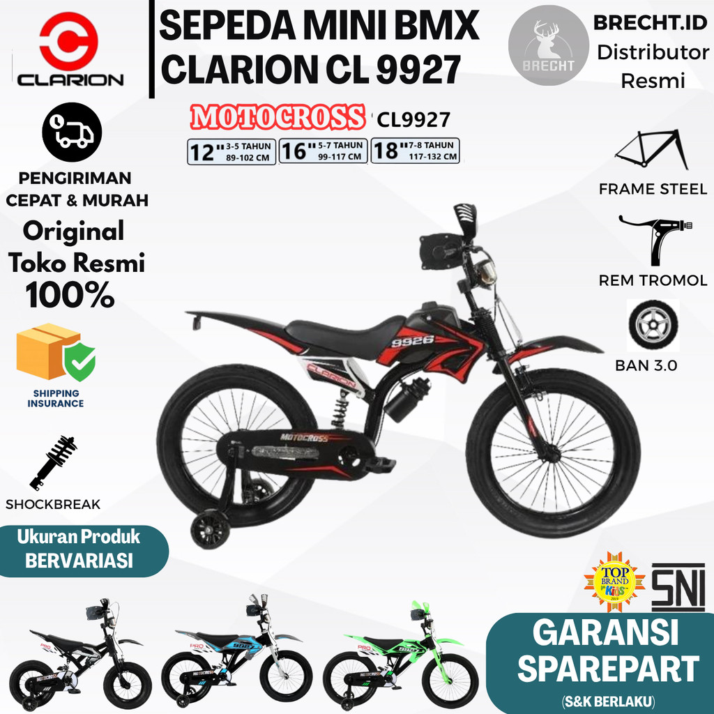 Sepeda Anak Laki BMX Trail CLARION CL 9927 CL9927 Size 12"16"18" Inch Model Motor Cross Ada Suspensi