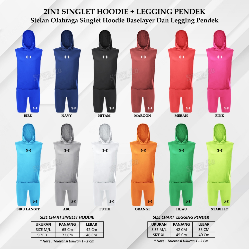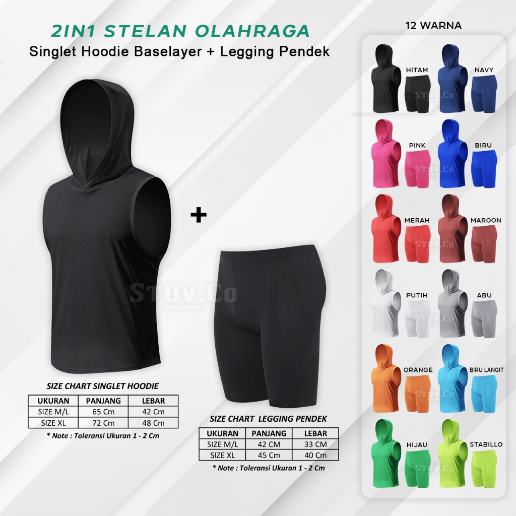 2IN1 STELAN MANSET SINGLET HOODIE SLEEVELESS TANPA LENGAN CELANA BASELAYER PENDEK SHOT OLAHRAGA
