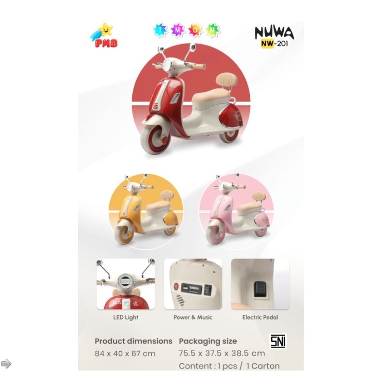 Motor Aki Anak Vespa PMB Nuwa NW-113 NW113 Nuwa NW-115 NW115 Nuwa NW-201 NW201 Musik Lampu Original Lucu Bagus Keren