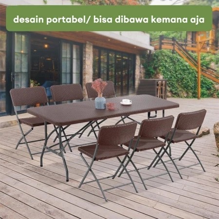 Meja lipat portable cokelat Meja lipat jualan Penebalan 1.2/1.5/1.8m meja lipat plastik meja lipat Outdoor Indoor