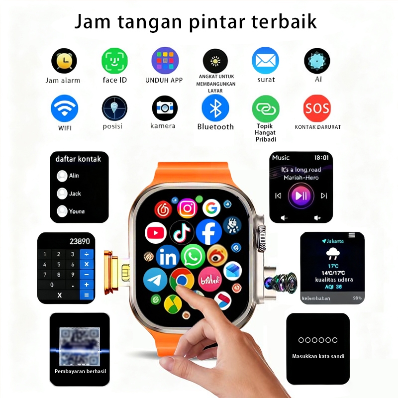 jam tangan Smartwatch S8 MAX+ SIM CARD Smartwatch wanita & pria | AMOLED | GPS 4G|5G | IP68 tahan air | NFC WIFI Kamera
