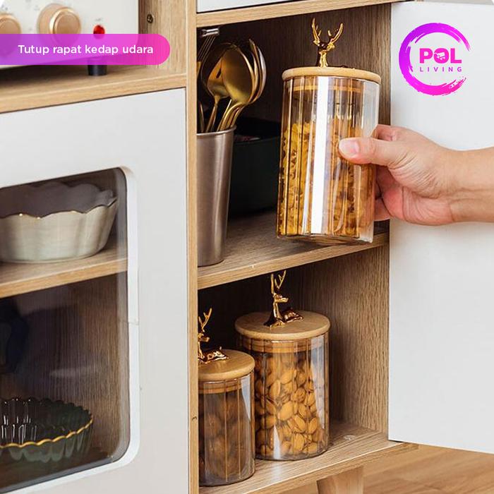 [POL] c06 Toples Kaca Rusa 3m45 Set 3pcs | Toples Kedap Udara | Tempat Penyimpanan Makanan - 1 Set 3pcs - Putih