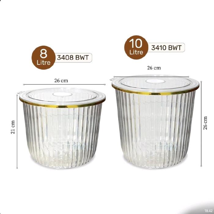 Naiba Toples transparant Bonita 3408 dan 3410 | 10 liter dan 8 liter Acrylic Plastik Aesthetic - Bonita 10 Liter (3410)