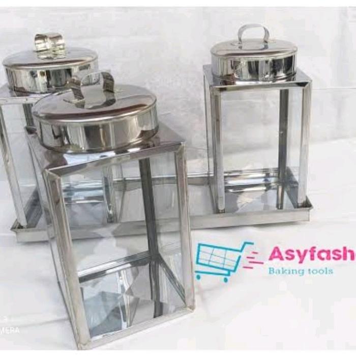 Toples Kaca Tebal Frame Srainless Set3 - Set 3 Kotak Rata