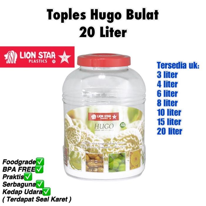 Toples Hugo Jar JUMBO 20 Liter Bening Toples Kerupuk Kedap Udara - Bulat