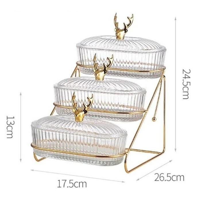 Toples Mewah Aesthetic Toples Snack 3m45 Toples Penyimpanan Makanan 2/3 Susun Piring Buah Mewah - 3 Susun deer