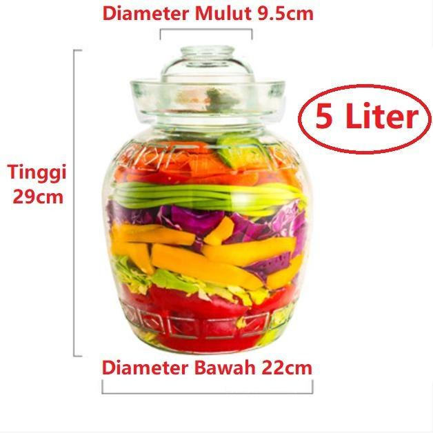 5 liter Guci Botol Toples Kaca acar sayur asin kimchi dengan tutup