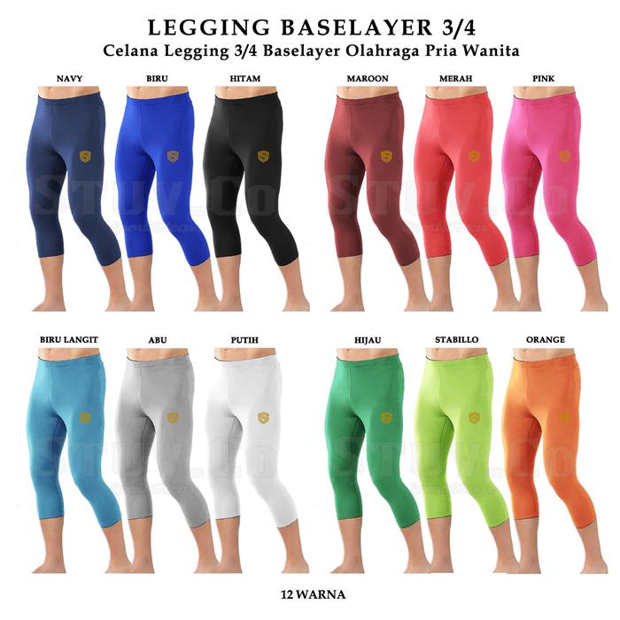 STUVCO CELANA LEGGING BASELAYER 3/4 OLAHRAGA PRIA WANITA GYM SENAM UNISEX 12 WARNA - ABU M FIT L