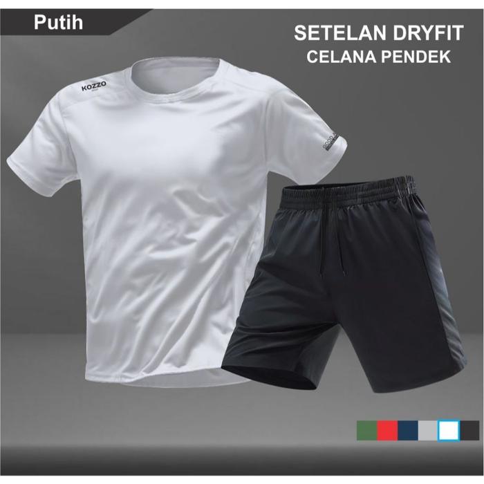Setelan Kaos Running Dry Fit Baju Olahraga dan Celana Pendek Lari Pria TANPA SAKU - Hitam (Kozzo) M