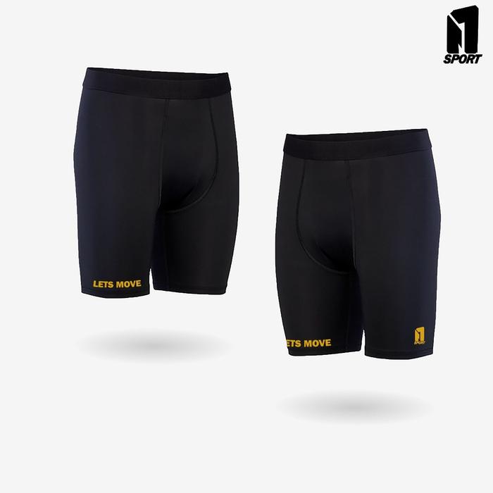 Celana Legging Sport Pendek Pria Legging Olahraga - Logo Njs yellow S
