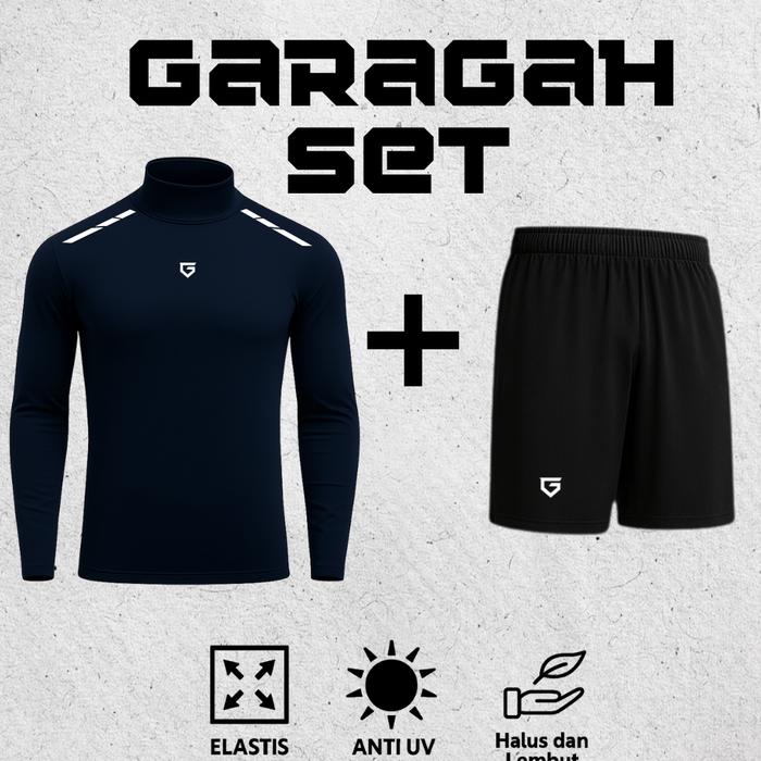 FULL SET PAKAIAN OLAHRAGA BASELAYER BAJU MANSET BASELAYER CELANA PENDEK LEGGING PANJANG PRIA WANITA SPORT - HITAM M