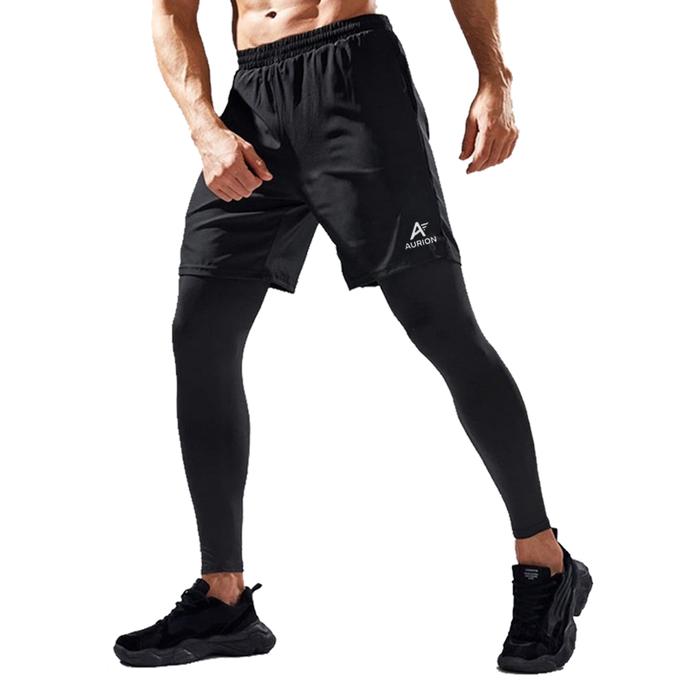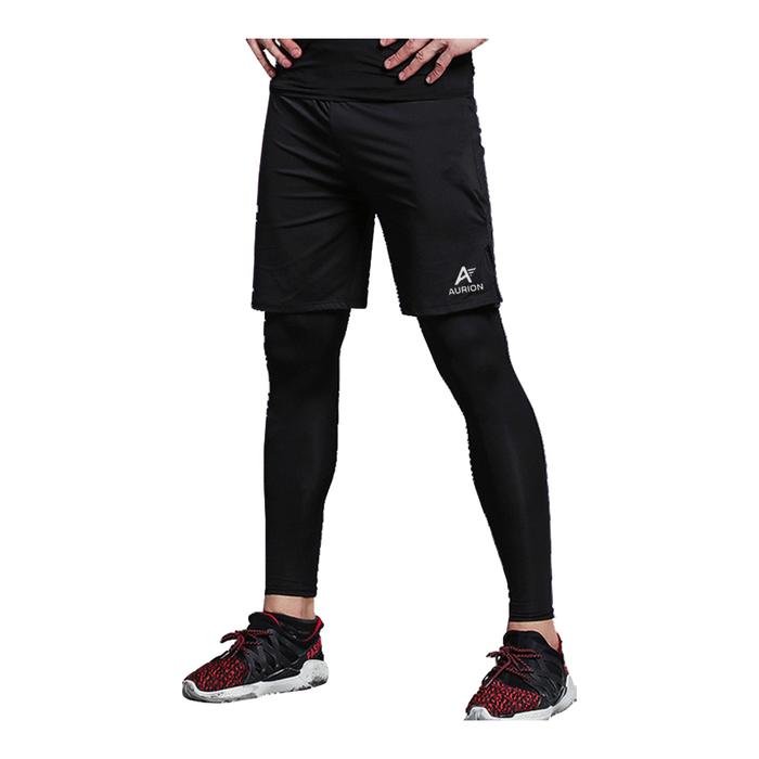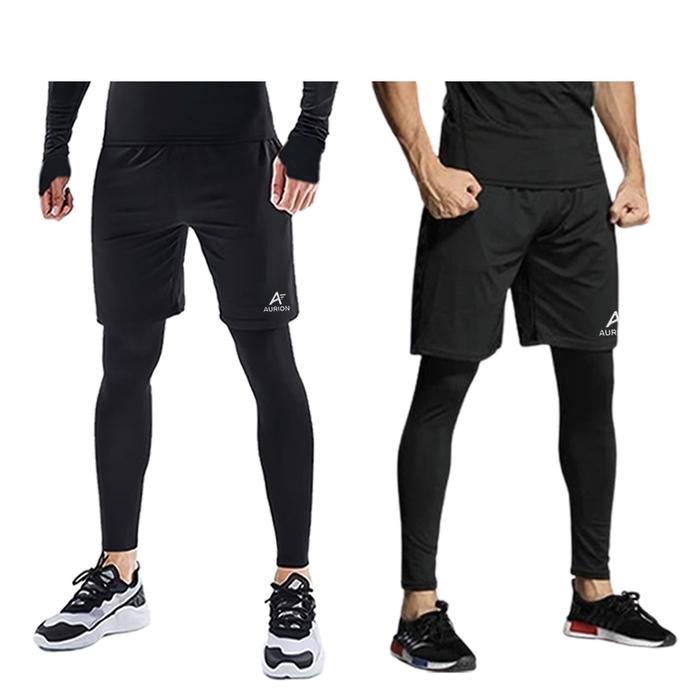 AURION Paket Celana Pendek Olahraga dan Legging Panjang Pria Wanita - Hitam S