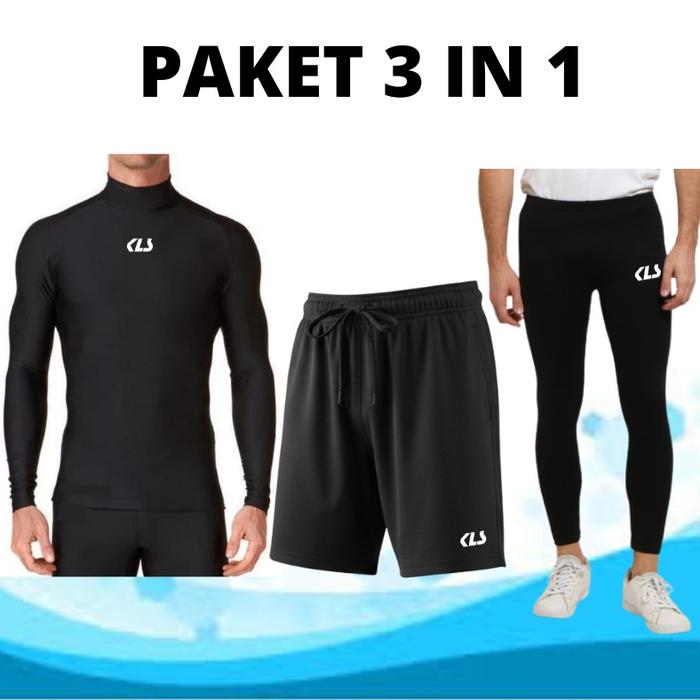 PAKET LENGKAP 3IN1 MANSET OLAHRAGA HEATGEAR CELANA PENDEK LEGGING BASELAYER KOMPLIT Setelan Sport - KLS S