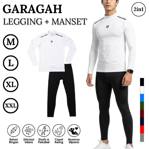 Baselayer Olahraga Pria 2-in-1 | Manset & Legging Compression Performansi Tinggi - HITAM M