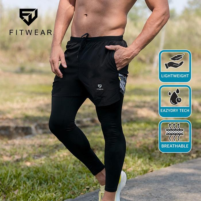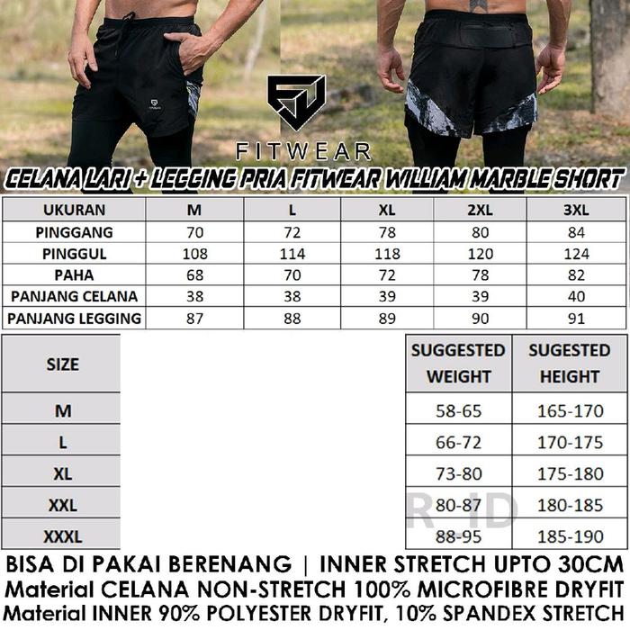 Fitwear Celana pendek Lari + Legging Pria WILLIAM MARBLE SHORT - BLACK - M - 3XL - M