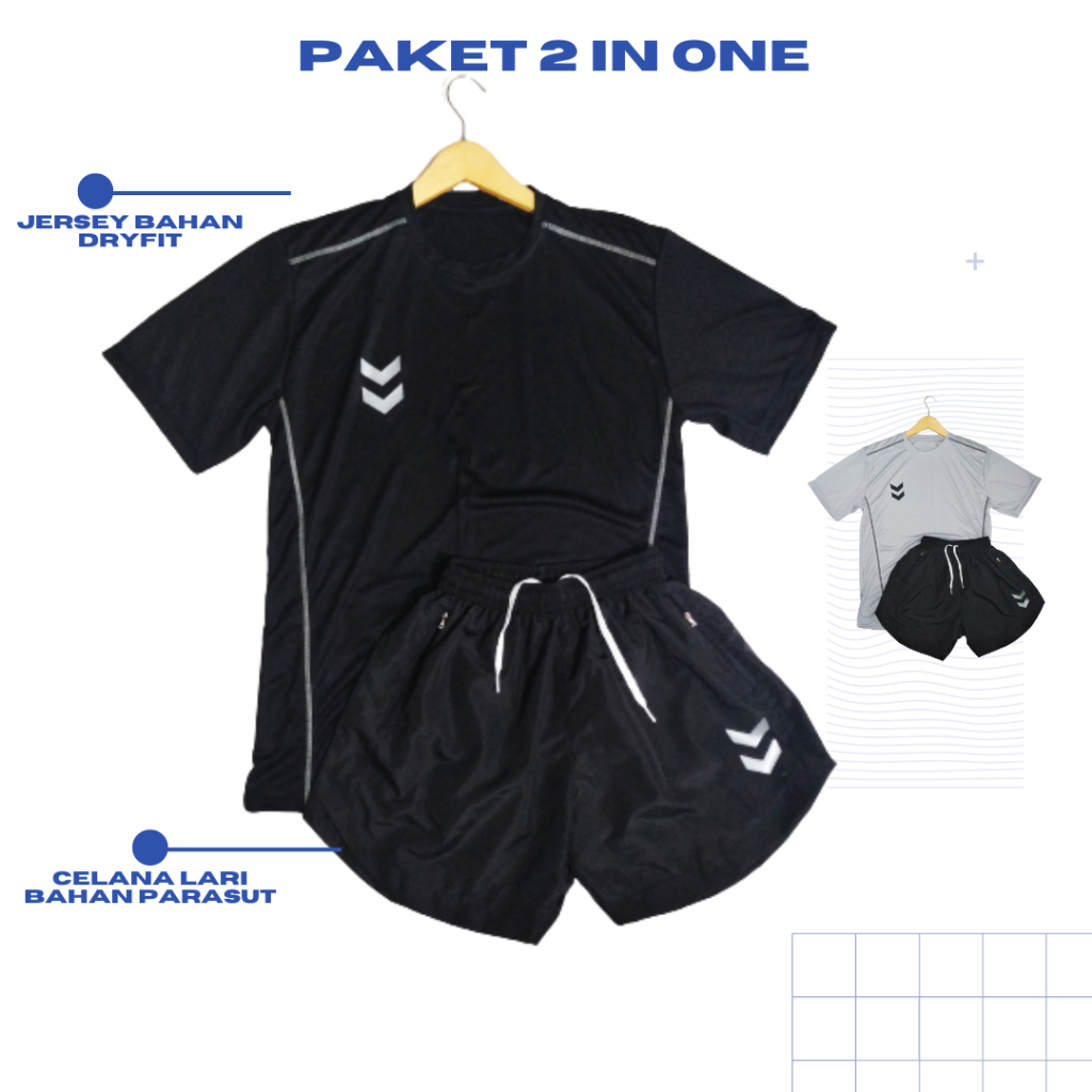 Paket 2 In One Stelan Jersey Olahraga Celana Parasut Lari Gym Binsik Model Kumis