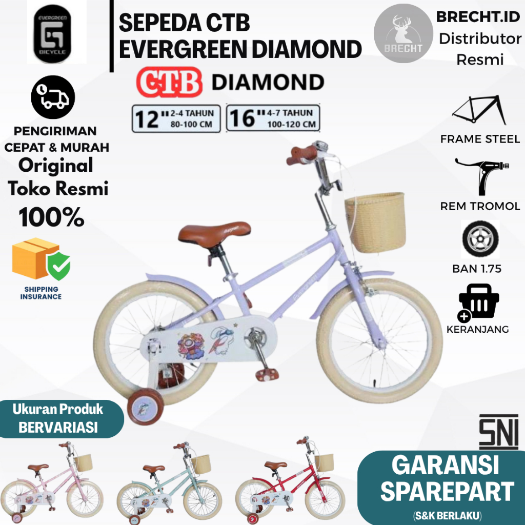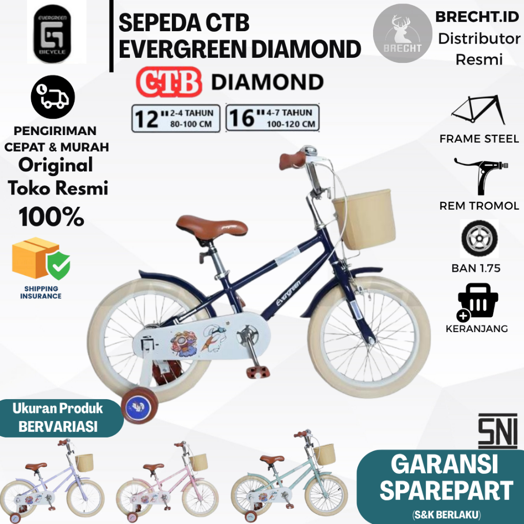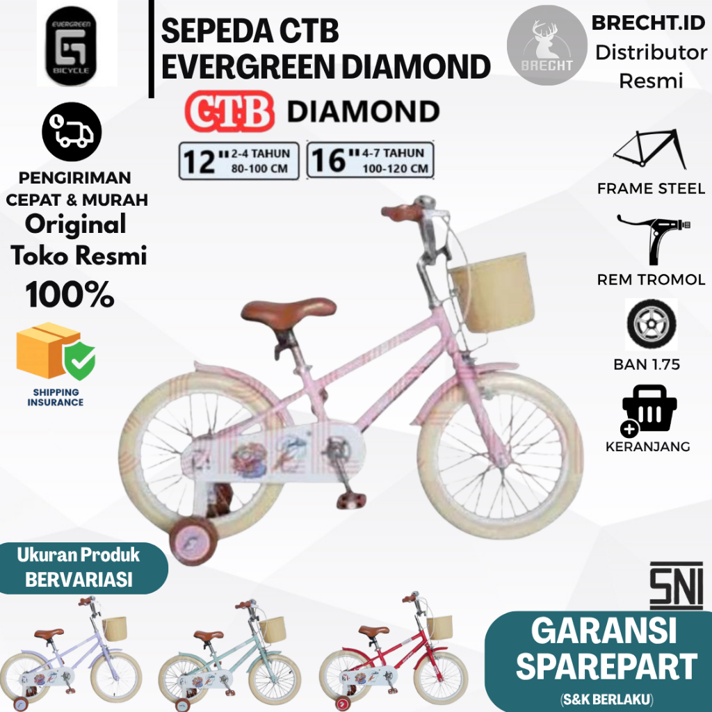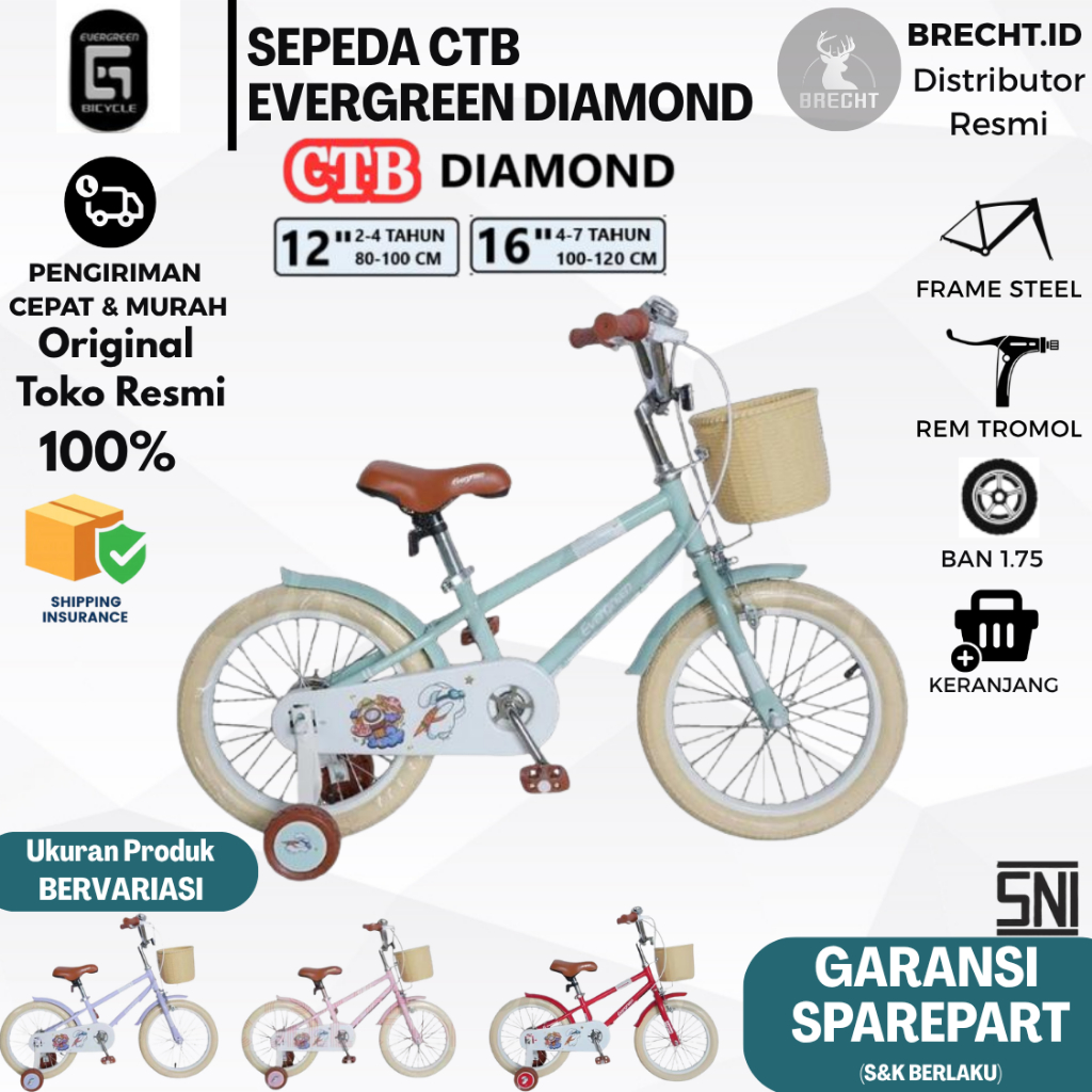 Sepeda CTB Mini Anak Perempuan Evergreen Diamond Ukuran 12"&16" Inch Vintage Korea