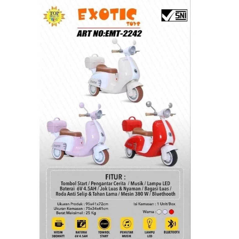 Sepeda Anak | Motor Aki Anak | Toys Driver Motor Aki Anak Scoopy Vespa Exotic Musik LED