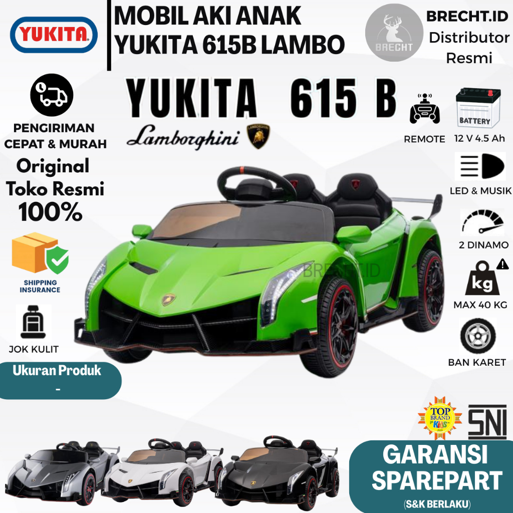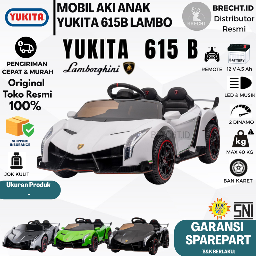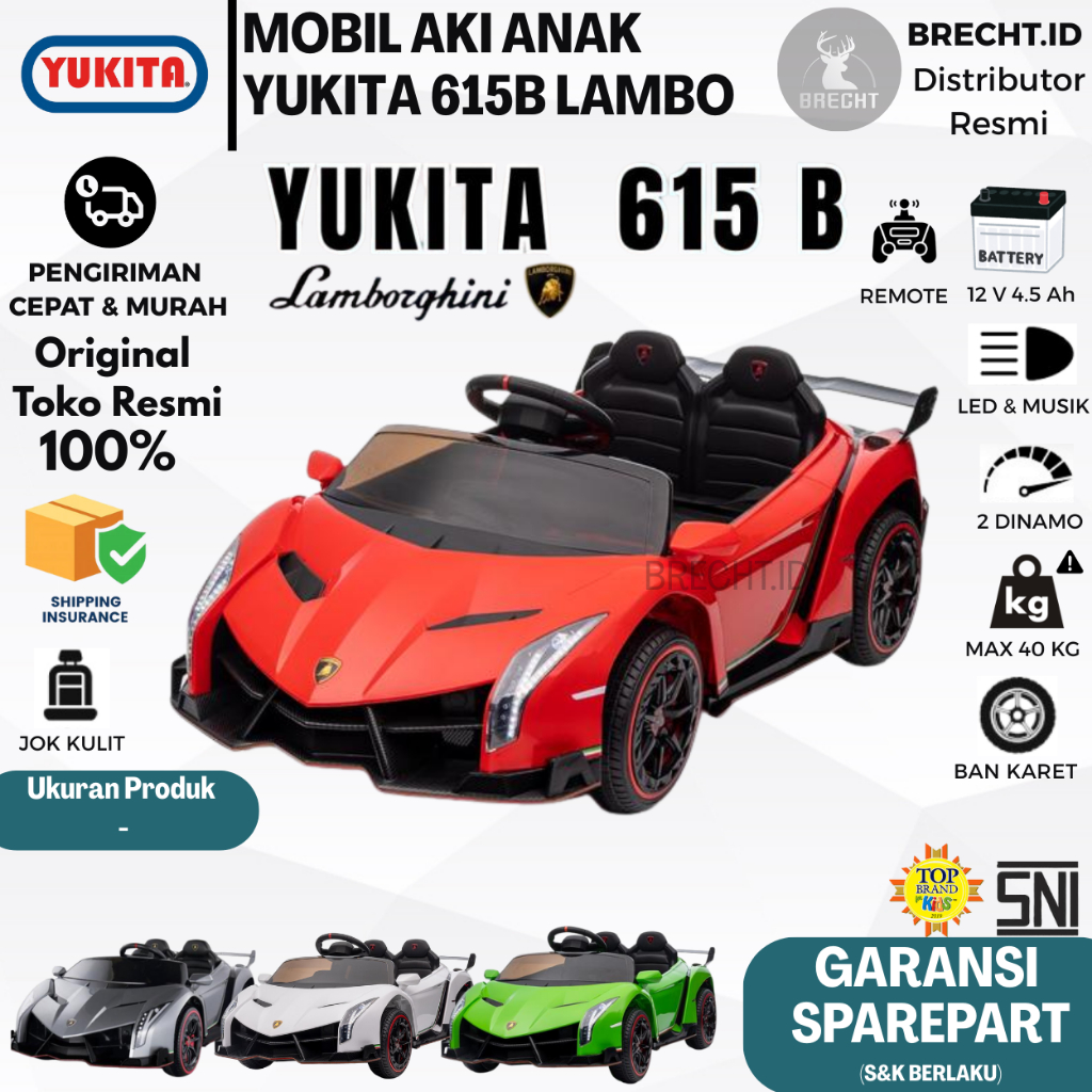 Mainan Anak Mobilan Aki Remote Control Yukita 615 B Lamborghini Veneno 12V Gearbox Ganda Licensed