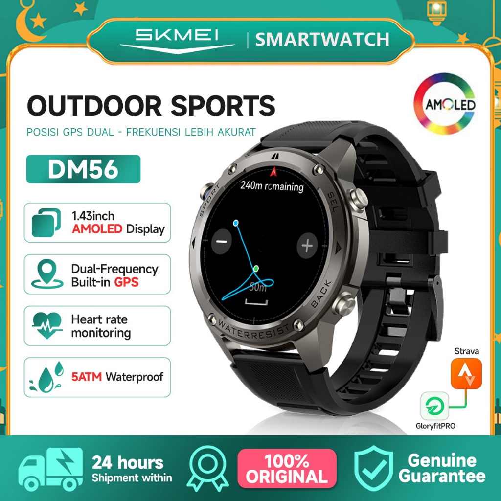 Smartwatch GPS Map | 1.43 Amoled | 5ATM Waterproof | Compass | Altitude Air Pressure jam olahraga / Smartwatch bahasa In