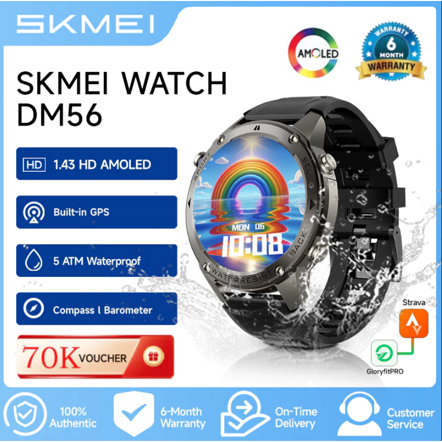 SKMEI Smartwatch Pria DM56 GPS Map 1.43inci Amoled Touch Screen Support Stava Jam Tangan Smartwatch 5ATM Waterproof |Sup