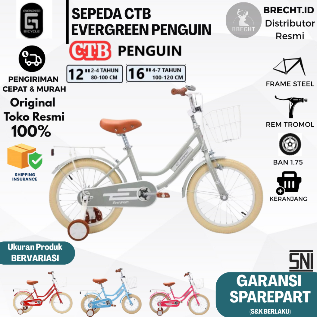 Sepeda Anak Perempuan Girls Mini CTB 12 & 16 inch Evergreen Penguin