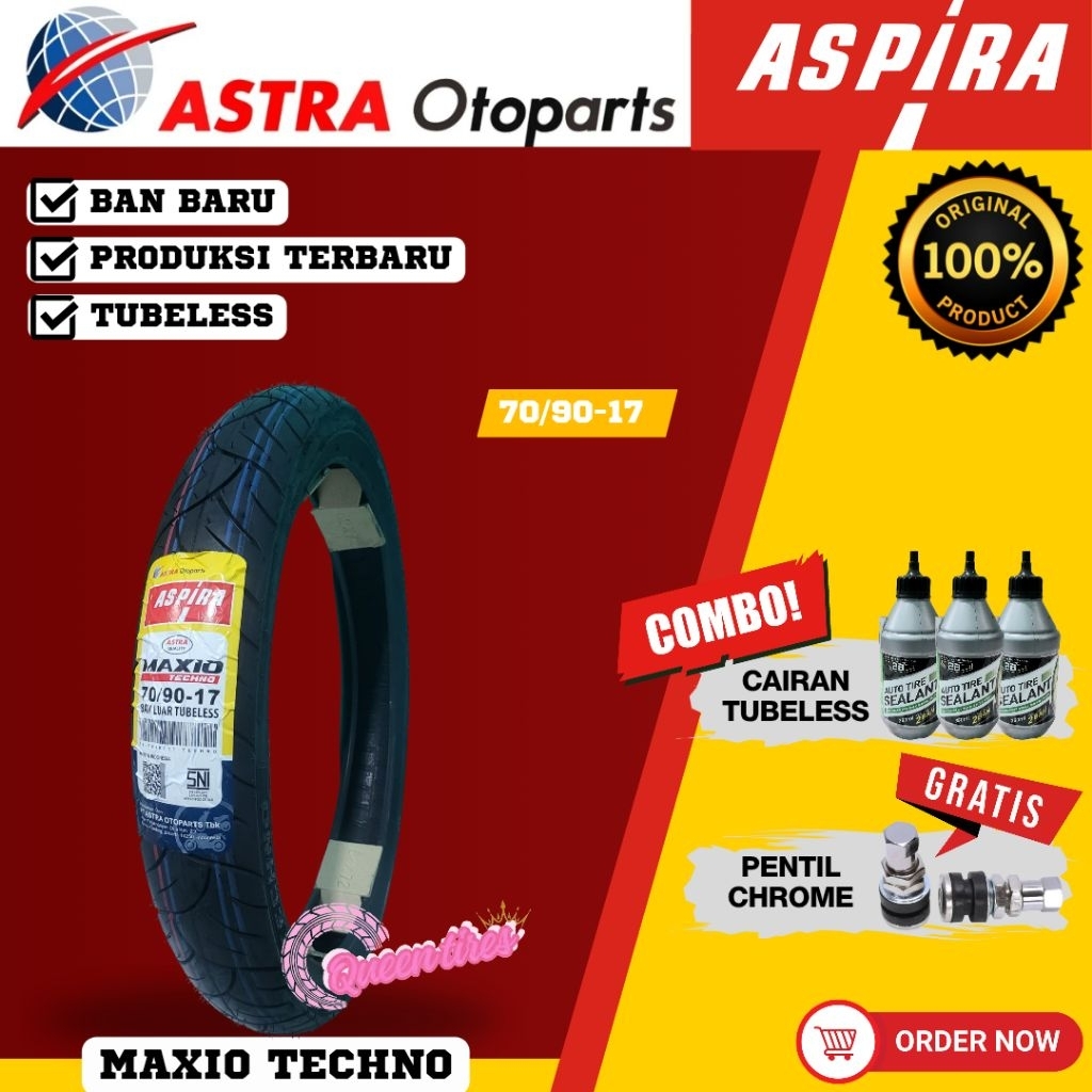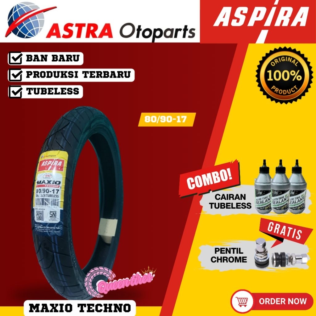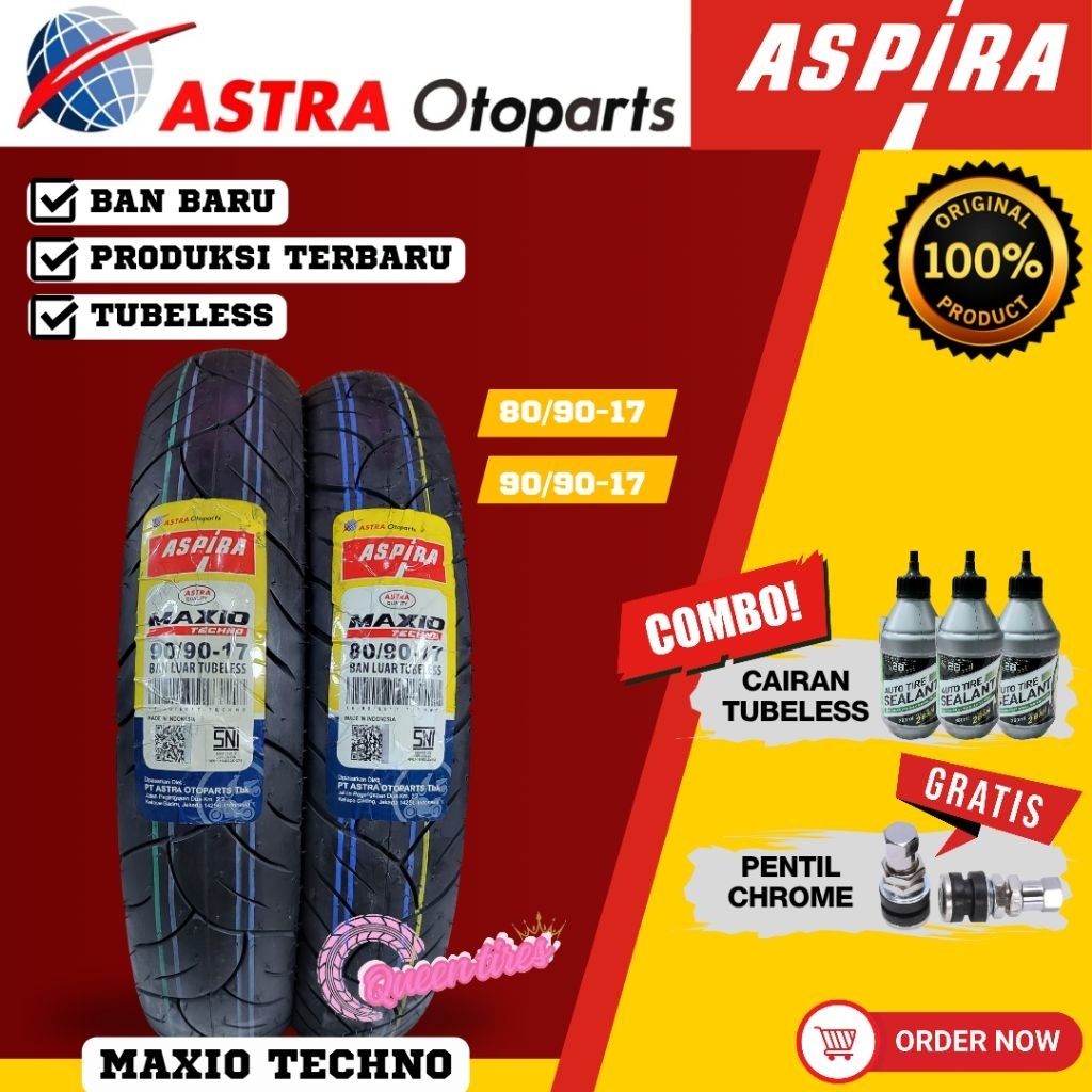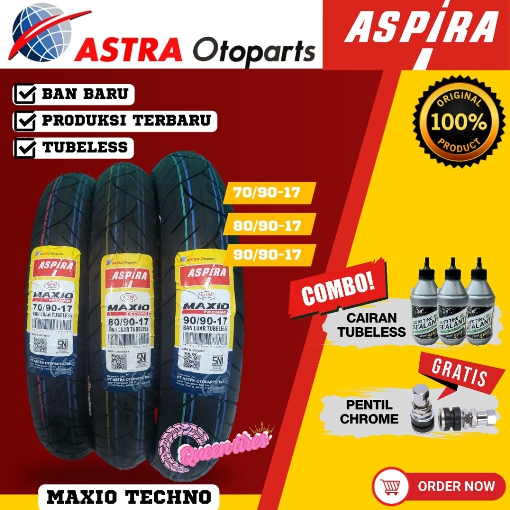 Ban Baru Paketan Tubeless Aspira Techno Astra Ring 17 Motor Manual Bebek 70/90-17 80/90-17 90/90-17