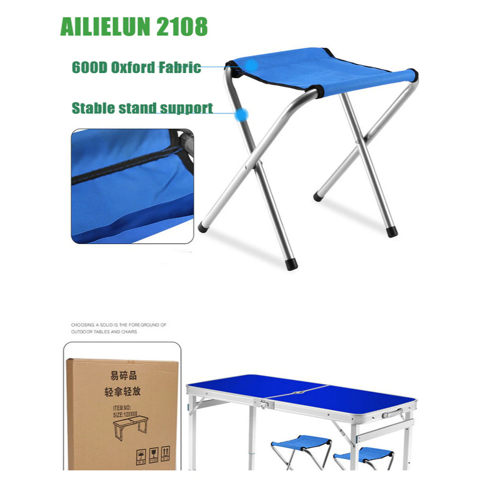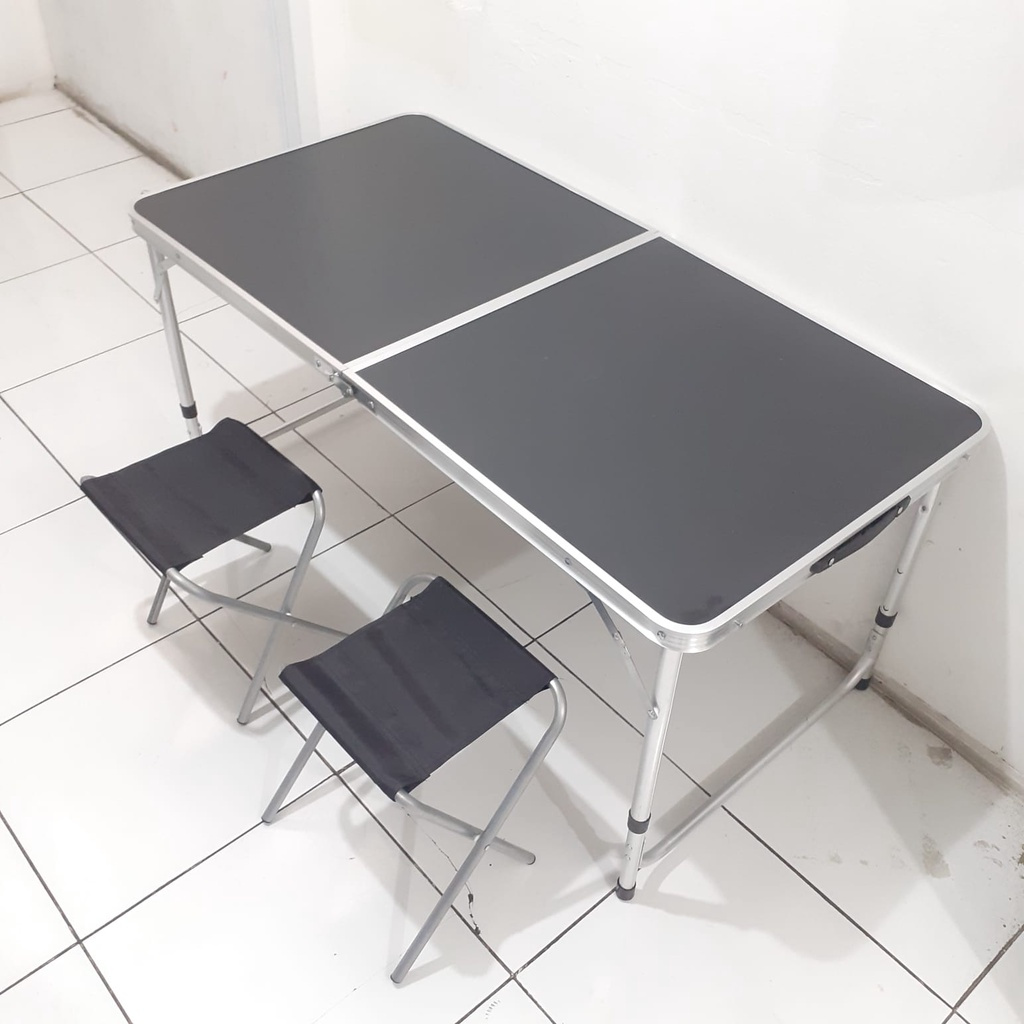 Meja Lipat Koper / Meja Lipat Jualan / Meja Lipat Portable Free 2 Kursi Ukuran 120 X 60 X 55 -70 Cm