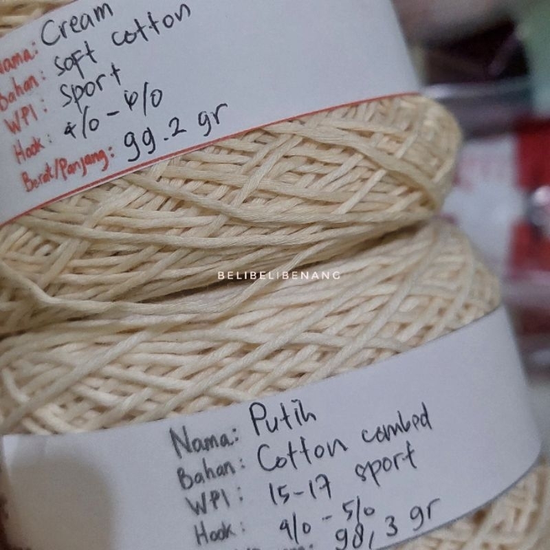 benang rajut cotton combed small ply PUTIH SERIES / benang katun
