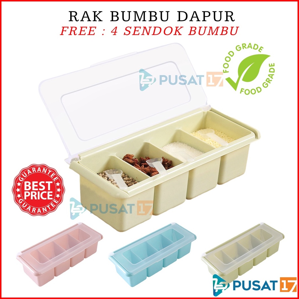 Pusat17 Tempat Bumbu 4 Sekat Kotak Bumbu 4 In 1 Tempat Bumbu Dapur Rak Bumbu Dapur Wadah Bumbu Seasoning Box 4in1